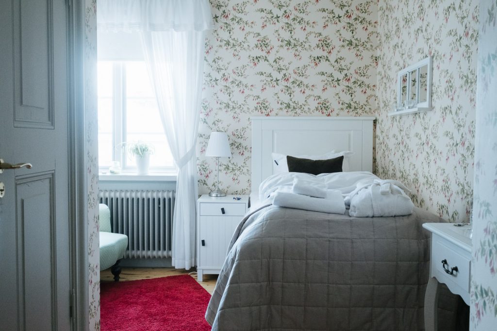 På herrgården finns totalt 19 rum, varav 4 enkel- och 15 dubbelrum och rumsindelningen är intakt från när herrgården uppfördes. Alla rum är unikt och personligt möblerade. Varje rum bär också på sin egen historia och många av dem har också fått namn utifrån sina ursprungliga användningsområden.