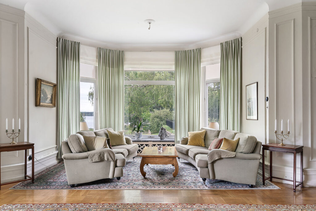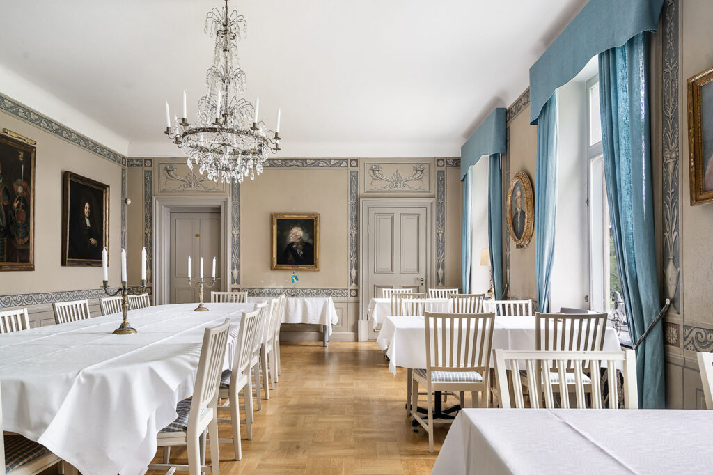 Det stora konferensrummet är ljust och vackert med sin kakelugn och sina kristallkronor och har en vacker utsikt över parken och sjön. Rummet rymmer 24 personer i U-sittning, 36 i skolsittning och 50 i biosittning.