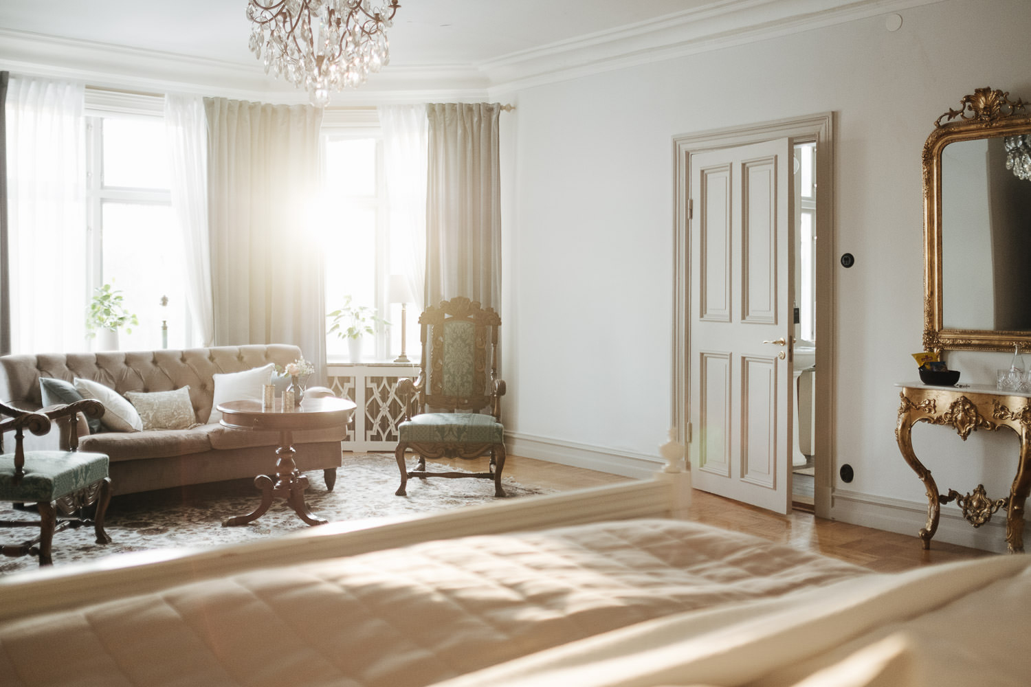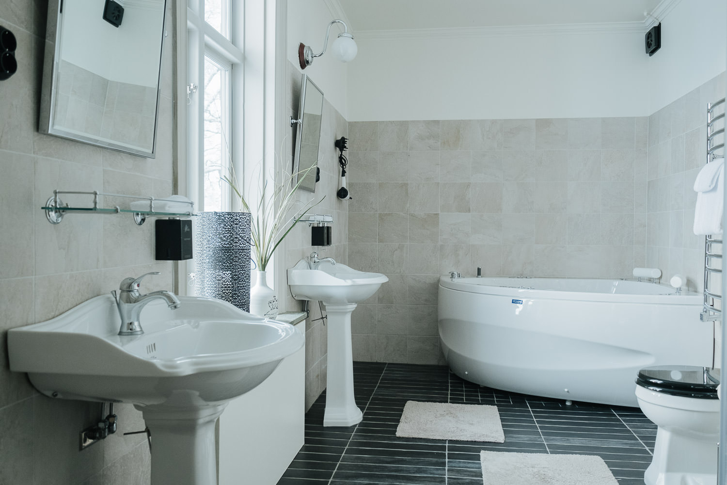 Vår vackra svit med utsikt över vår udde och Virsbosjön. Den spatiösa sviten är helt nyrenoverad och inrymmer en vacker sittgrupp och en kingsize dubbelsäng. Det fräscha badrummet har en härlig jacuzzi med plats för två.